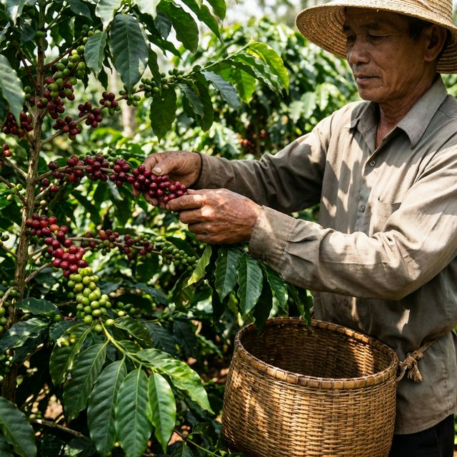 !Thu hoạch cà phê chọn lọc\n\nĐể đáp ứng nhu cầu ngày càng cao của thị trường "cà phê specialty" và "cà phê sức khỏe", quy trình canh tác tại Việt Nam đang có những thay đổi đáng kể.