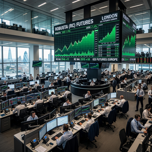 Sàn giao dịch ICE Futures Europe, thường được gọi là sàn London, là trung tâm giao dịch kỳ hạn quan trọng nhất đối với cà phê Robusta toàn cầu. Đây là nơi các nhà rang xay, đơn vị xuất nhập khẩu và các quỹ đầu tư thực hiện các giao dịch phòng hộ (hedging) và đầu cơ.